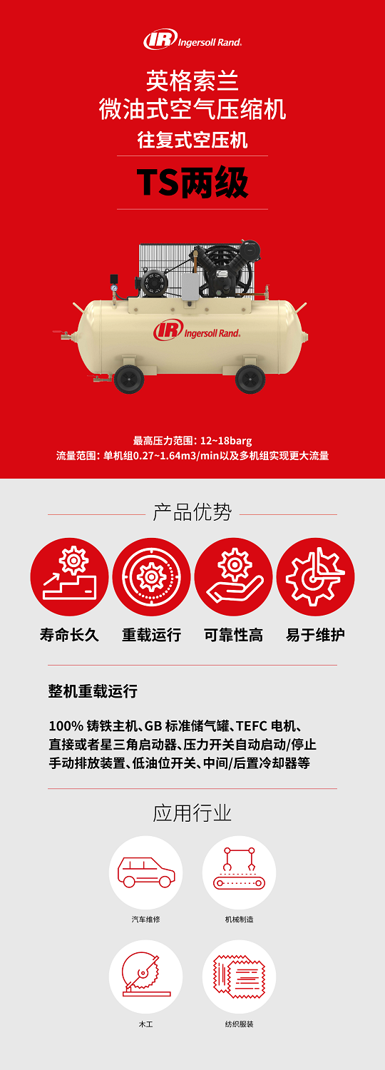 英格索兰微油式空压机之TS两级往复式空压机